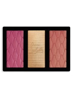 A refillable face palette with three shades including a highlighter and two complementary blushes for a complementary shades for a customizable complexion. The So Chick palette features two blush shades, a matte rose and satin coral with a light pink gold highlighter for an enhanced glow. Each refill is held within a black or red refillable case (sold separately) covered with the iconic Christian Louboutin spikes. 0.35 oz. Made in Italy.
