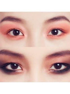 Apply the lightest shade on the entire eyelid. To intensify the look apply a bolder shade along the lash line then blend to the outer corner of the eye. Enhance the look by applying a darker shade under the eye, then blend and finish by adding a touch of light with a light metallic shade in the corner of the eye.