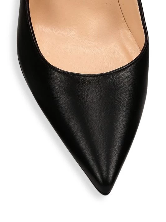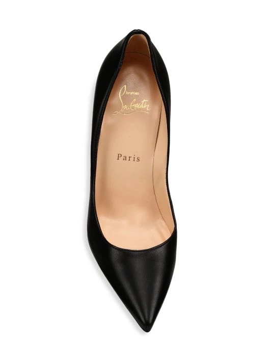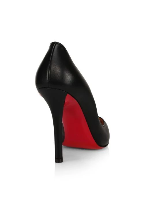 Flaunting a minimalist silhouette, these smooth leather pumps is defined by its low cut vamp, seductive point toe and signature red sole.