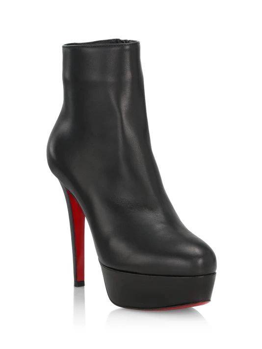 Featuring a sleek silhouette and almond toe, these rich leather booties are set on a striking stiletto heel.