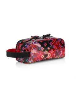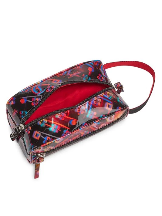 Crafted of coated leather, this multi-purpose toiletry bag features an outside zipper pocket and a retro-style Louboutin logo print.