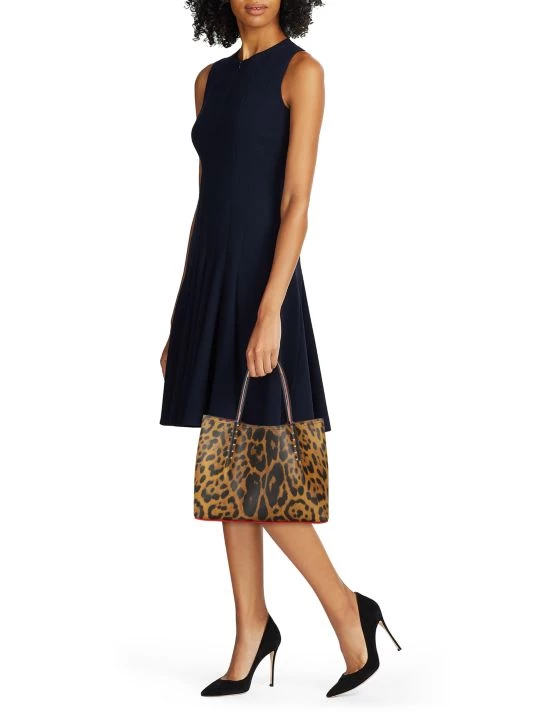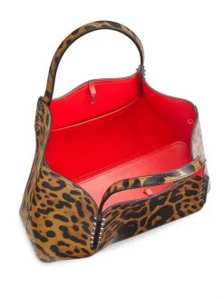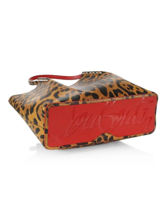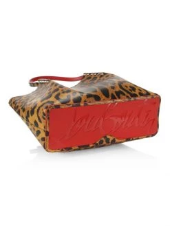 The Cabarock tote from Christian Louboutin is crafted of leopard-printed leather with a signature red base and studded hardware.