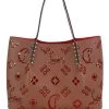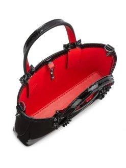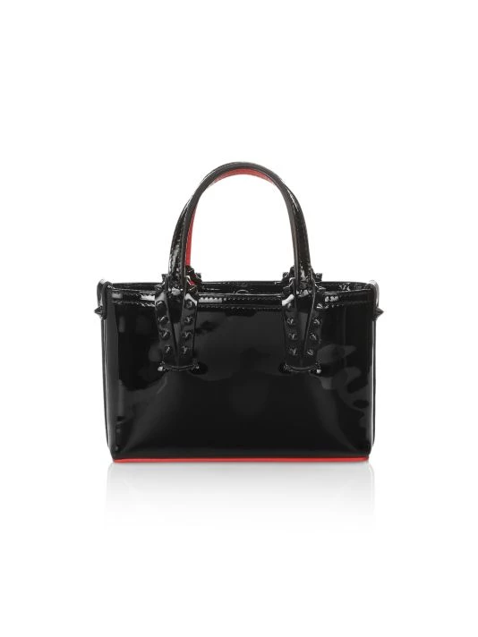 Christian Louboutin’s Cabata tote is crafted of shiny patent leather with tonal spike accents at the handles.
