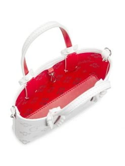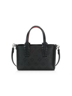 Christian Louboutin’s Cabata tote is made of perforated leather showcasing the signature Loubinthesky motif. Punctuated with tonal spiked studs, this piece is finished with a signature red interior.