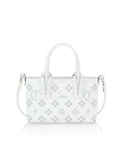 Christian Louboutin’s Cabata tote is made of perforated leather showcasing the signature Loubinthesky motif. Punctuated with tonal spiked studs, this piece is finished with a signature red interior.