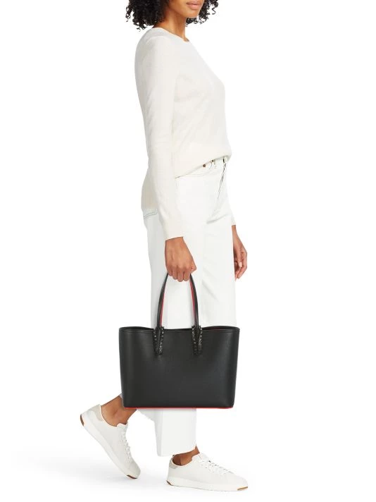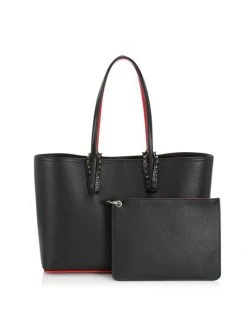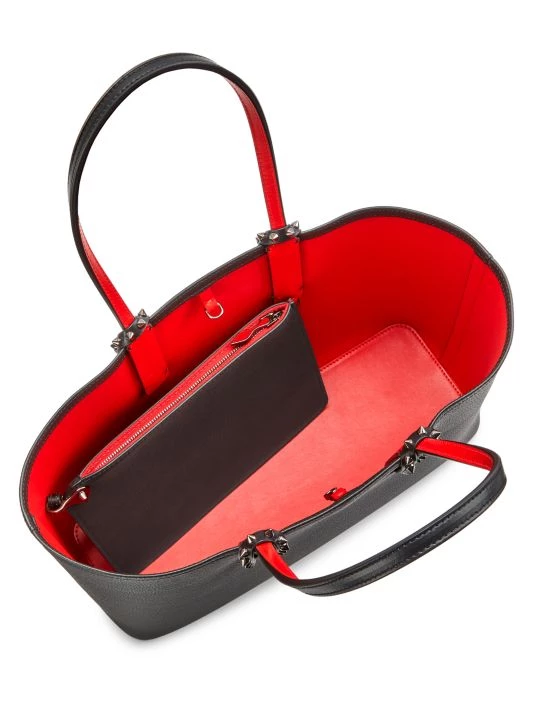 This exciting tote is embellished with studs and finished with the house’s signature red interior.