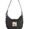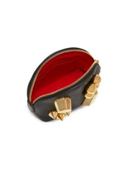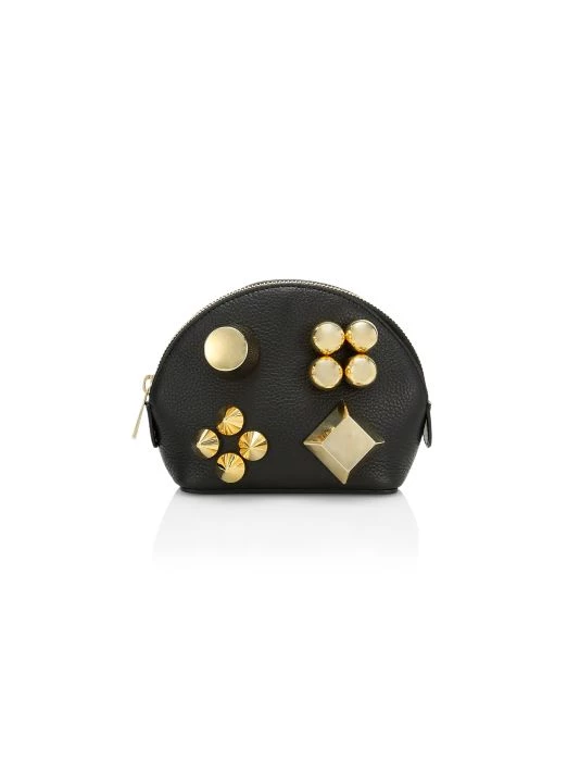 A mixture of oversized polished studs highlight this grained leather pouch.