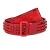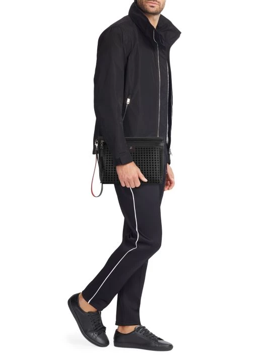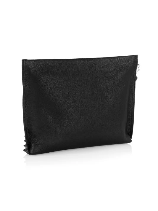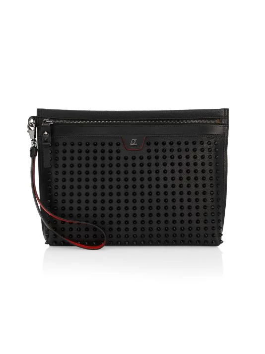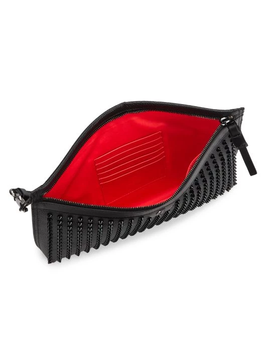 Crafted of calf leather, this pouch wristlet sports spikes on the front and features a contrast interior with six card slots.