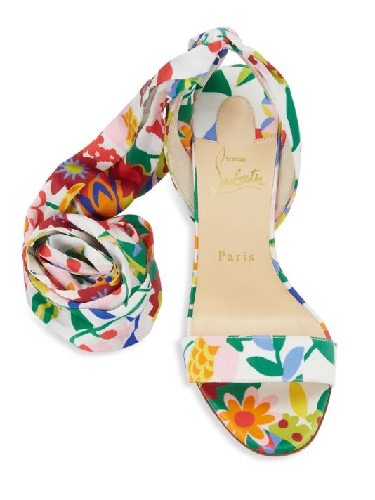 Bold in a colorful statement, these silk crepe sandals exude exotic flair.