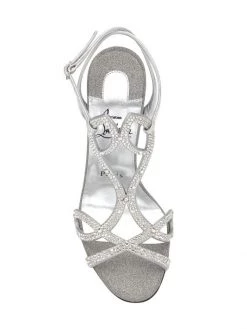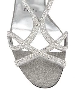 Set high on a striking stiletto heel, the Double L sandal features two narrow crossed straps in a cursive L shape. Dressed in dazzling crystals, glitter and metallic leather, these sandals evoke regal elegance