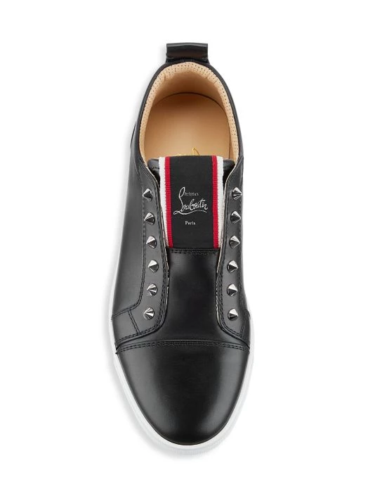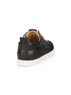 Smooth in finish, these leather sneakers showcase a varsity stripe logo patch.