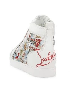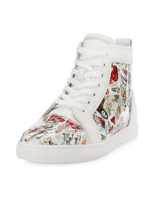 Christian Louboutin’s Fun Louis sneakers are decorated in comic print. Made in Italy of calf leather, this high-top pair is detailed with a signature logo at the back.