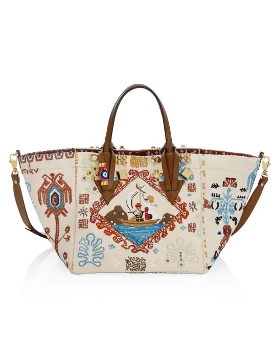 Skillfully crafted in Italy, Christian Louboutin’s Greekaba tote is decorated in intricate heritage embroidery. This eye-catching piece is finished with the signature Loubinthesky studded hardware.