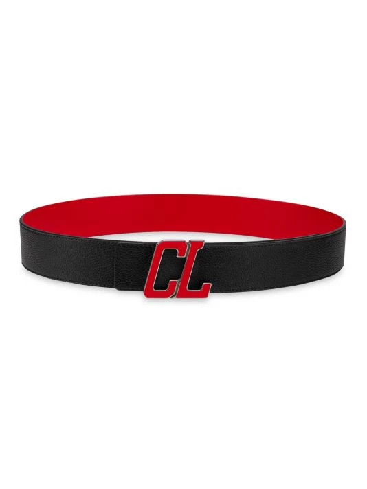 A lacquered logo buckle punctuates this leather belt.