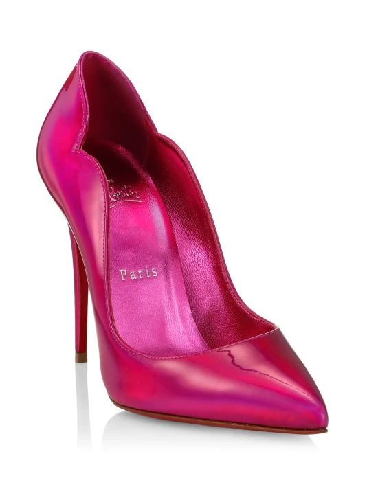 Made in Italy, Christian Louboutin’s Hot Chick pumps are crafted of rich leather with a signature scalloped trim.