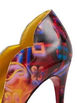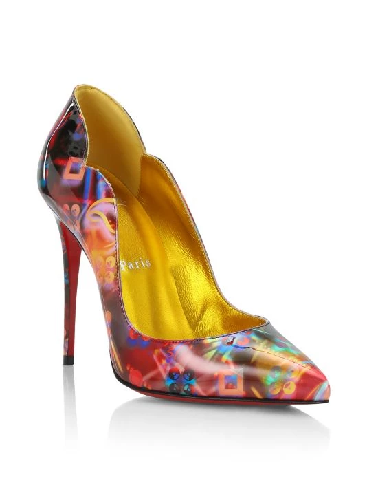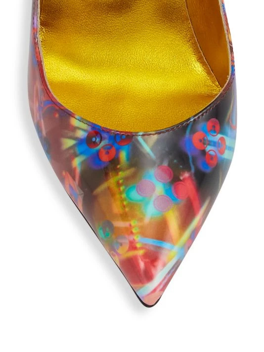 Rendered in disco printed leather, these statement pumps flaunt a curved trim.