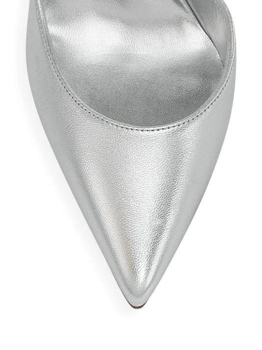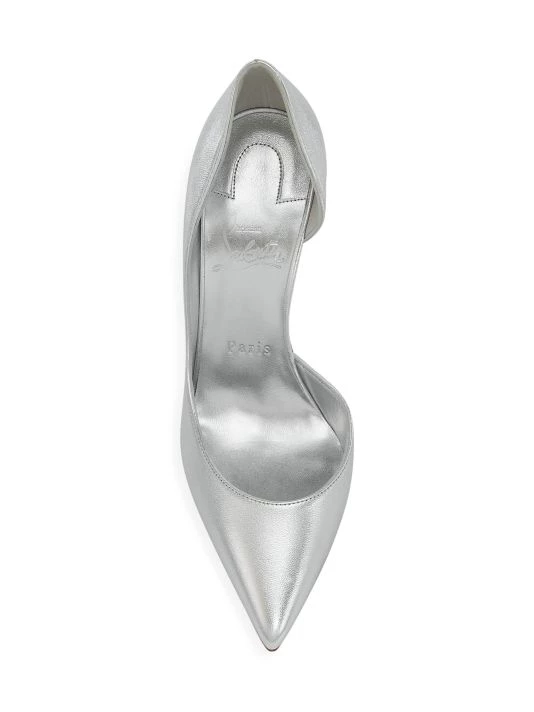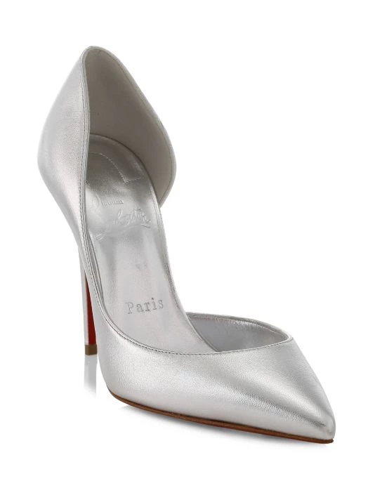 Christian Louboutin’s Iriza pumps boast a half d’Orsay style. Made in Italy, these pointed-toe heels are crafted of metallic leather.