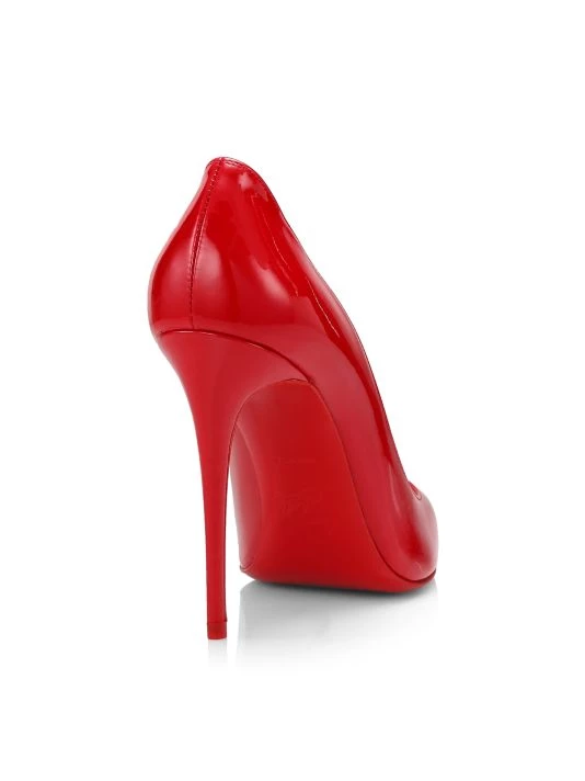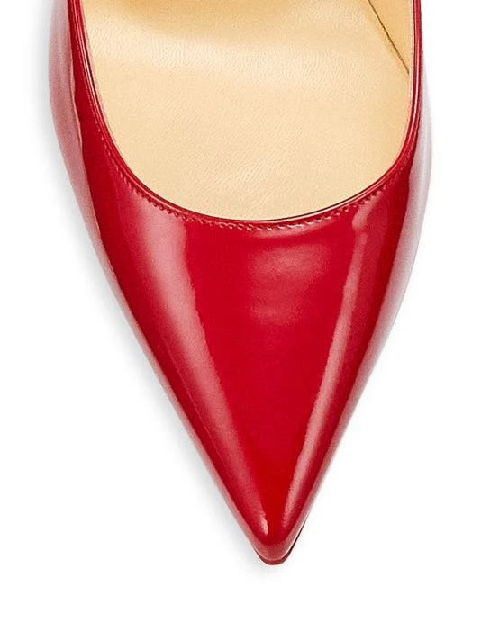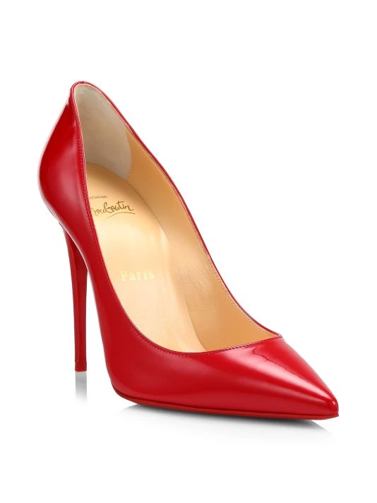 Glossy patent leather takes on a bright, crimson hue, lending undeniably dramatic style to a point-toe silhouette.