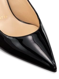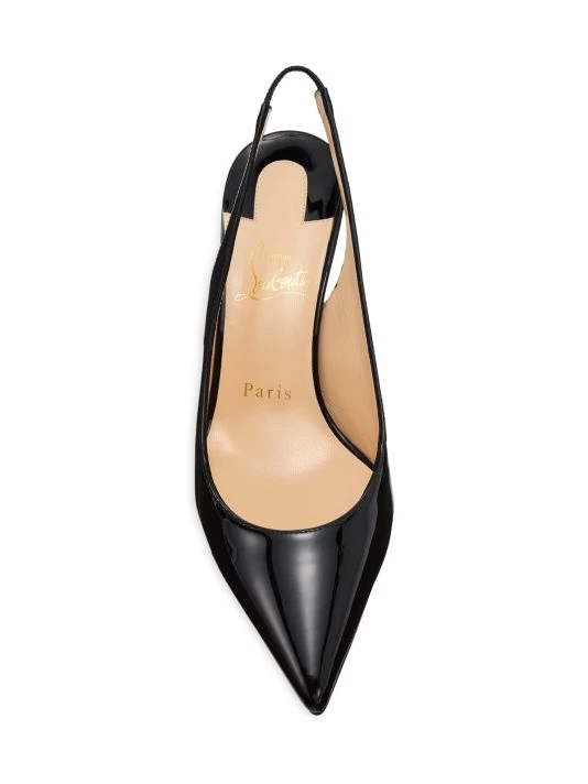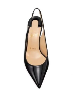 Slingback version of Christian Louboutin’s iconic Kate pump, rendered in rich patent leather, finished with a wearable wrapped heel and subtly pointed toe.