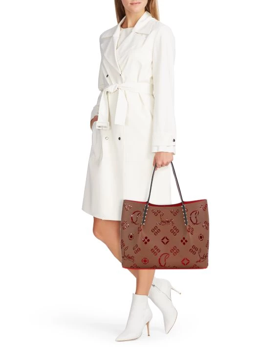 Punctuated with spiked studs at the handles, Christian Louboutin’s Cabarock tote is detailed with Loubinthesky-shaped perforated cut outs. This Italian-made piece is finished with the signature red interior.