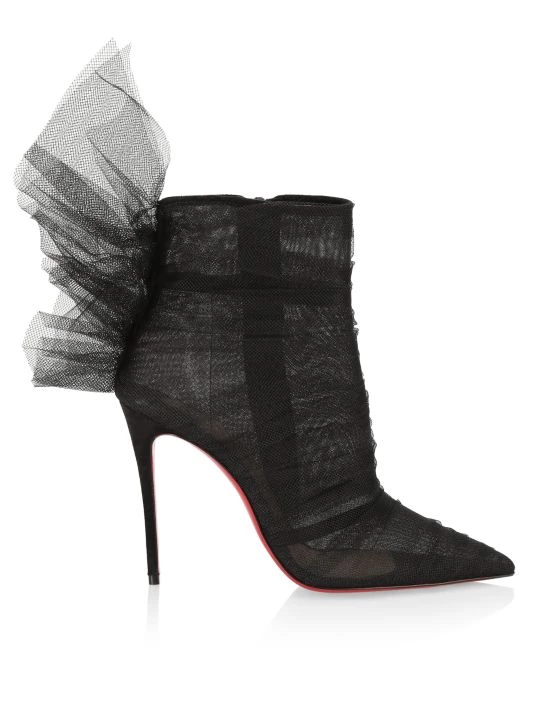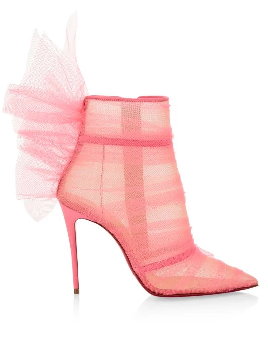Rendered in sheer tulle, these statement booties flaunt a point toe, set atop of a slender stiletto heel.