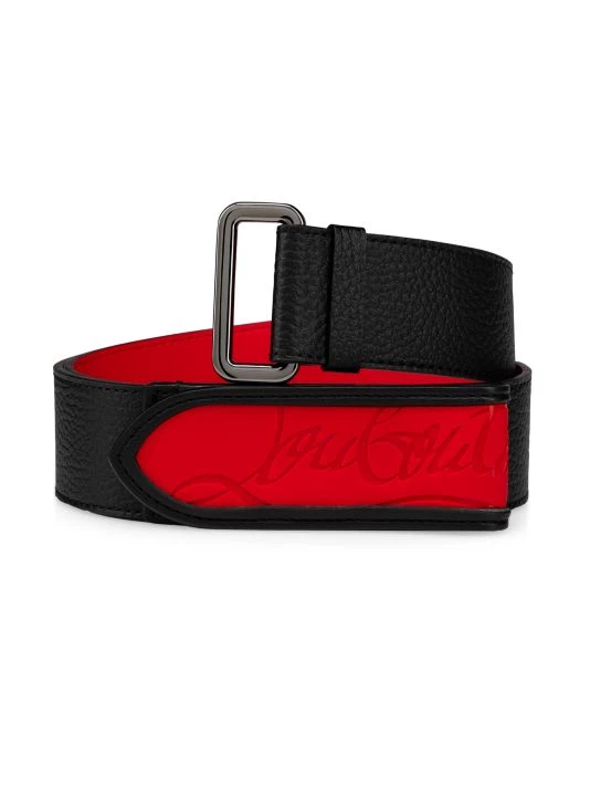 Crafted of a calfskin blend, Christian Louboutin’s Loubi belt features the brand logo embedded in a front panel reminiscent of the label’s signature red sneaker sole. This piece fastens with a foldover buckle.