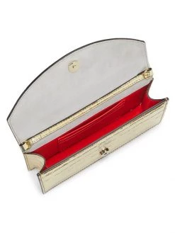 Made in Italy, the Loubi54 clutch by Christian Louboutin is crafted of eye-catching crocodile-embossed metallic leather adorned with signature CL logo hardware. This luxurious piece is accompanied by a lightweight shoulder chain for hands-free ease.