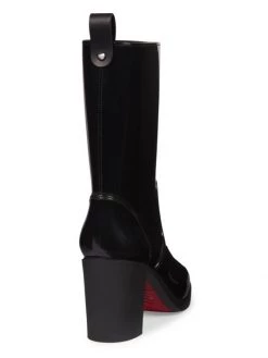 Christian Louboutin’s Loubirain boots feature tapered lines enhanced by the signature spike at the back loop. The maison mounts this pair on a block heel that showcase the iconic red sole.