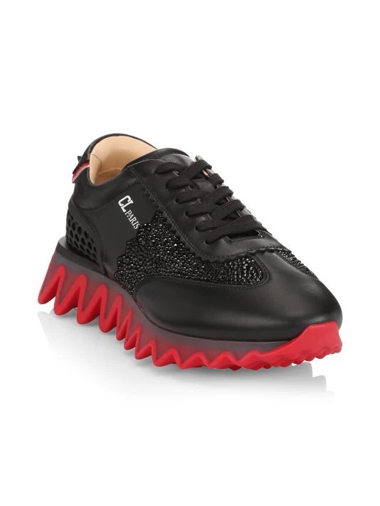 Mixed-media in design, these low-top sneakers are shark-inspired with an on-trend jagged sole and crystal embellishments.