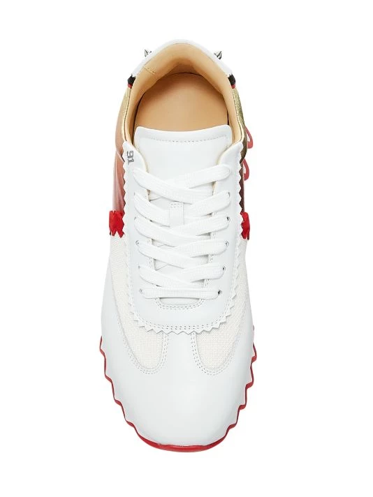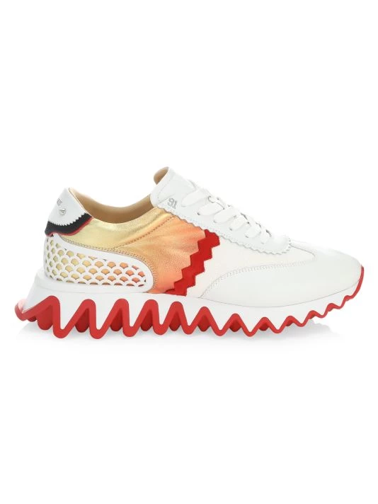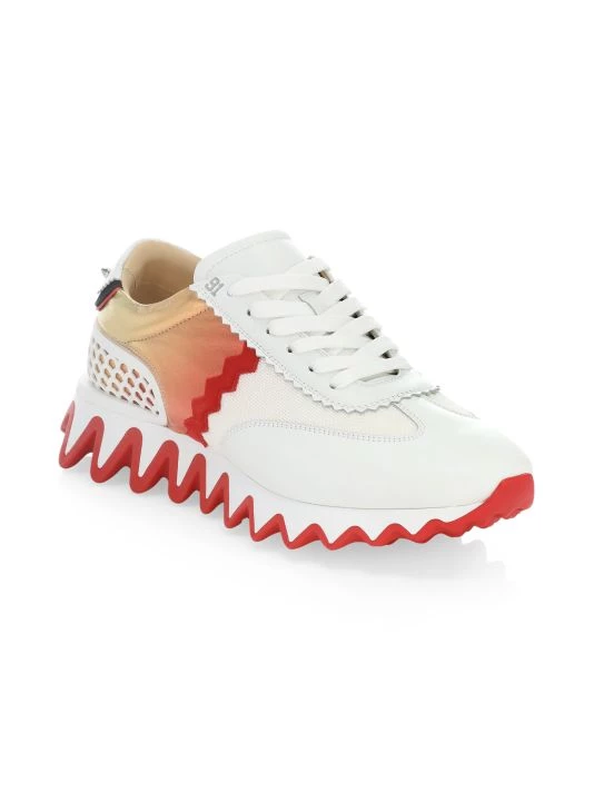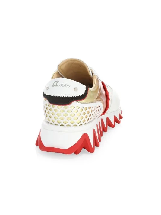 ONLY AT SAKS. The Loubishark sneaker gets its namesake from its shark teeth like two-tone rubber sole. A rubber cage at the heel is finished with signature spikes and CL monogram.
