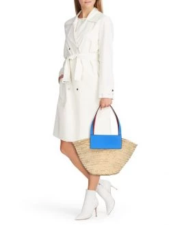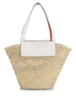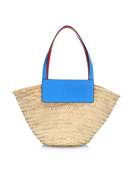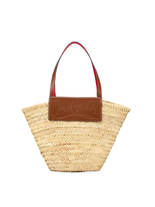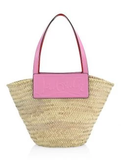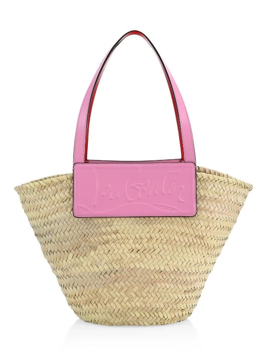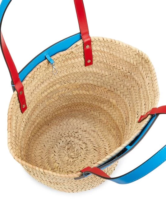 Topped with rich leather shoulder straps, this woven straw tote is an elevated beachy essential.