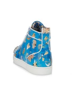 These high-top leather sneakers feature a Greece-inspired print and studs at the toecap.