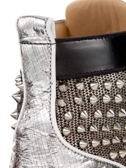 Christian Louboutin’s Louis Orlato sneakers sport a high-top silhouette and are adorned with studs at the toes and on the sides.