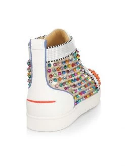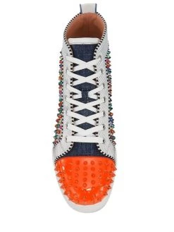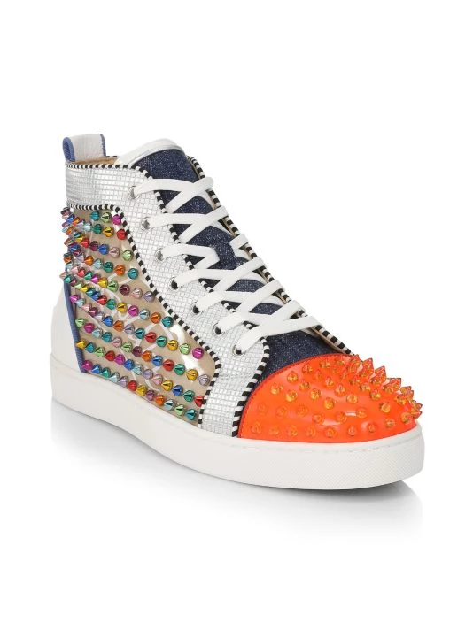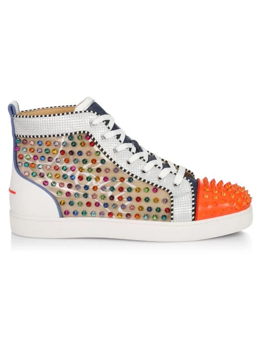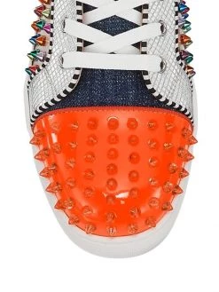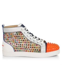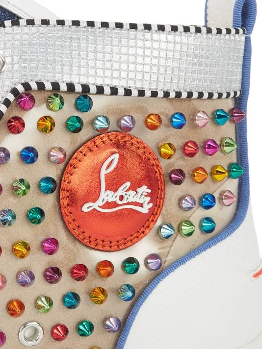 Crafted of a leather and polyester blend, these Louis Spikes sneakers from Christian Louboutin are adorned in spikes and feature a lace-up vamp.