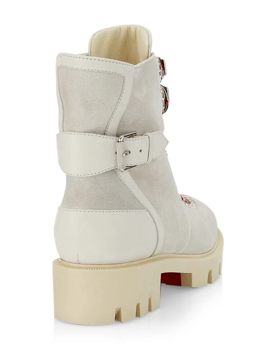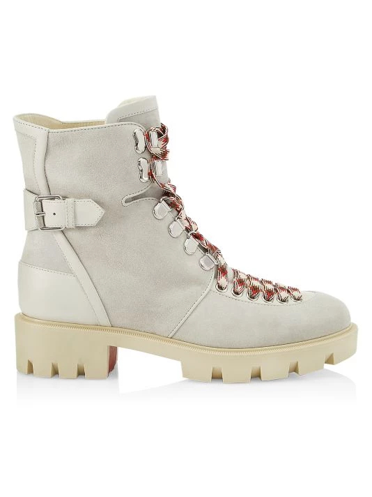 Fastened with rope laces, Christian Louboutin’s Macademia combat boots are crafted of supple suede with smooth buckled straps.This Italian-made pair rests on a lugged sole for a rugged look.