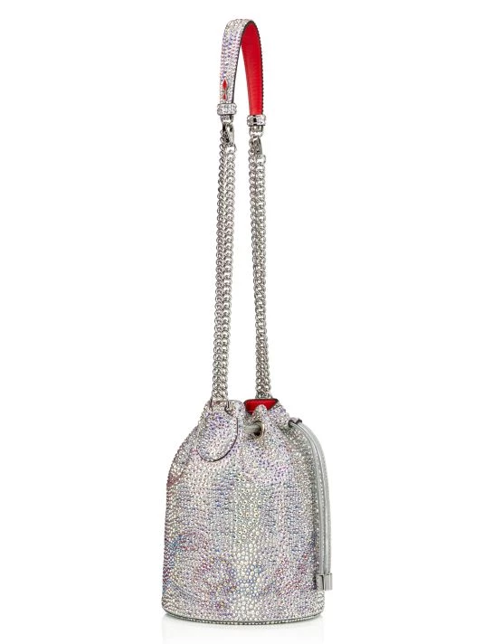 Embellished with allover crystals, this petite bucket bag has a glittering statement look.