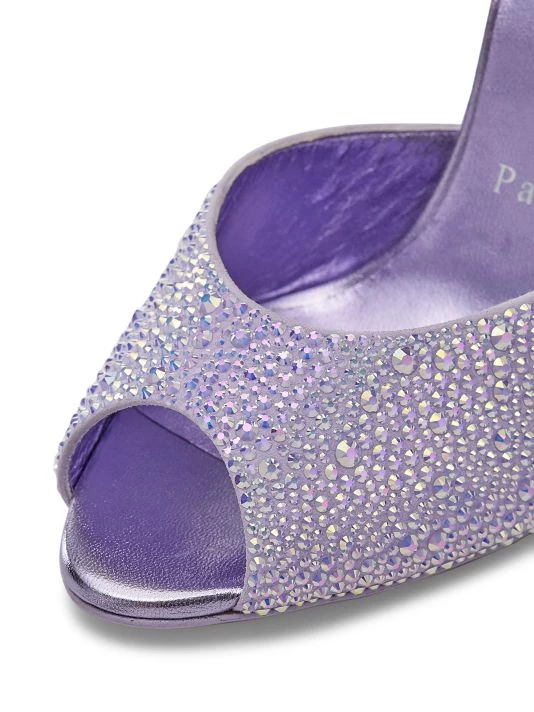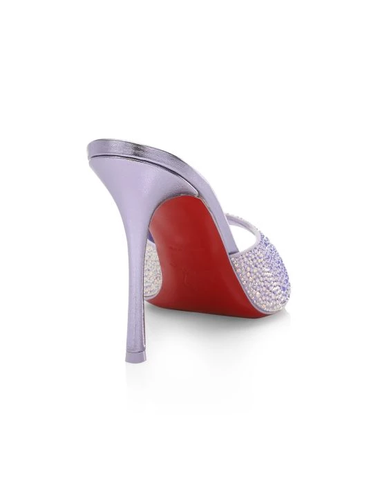 Decorated with shimmering embellishments, Christian Louboutin’s Me Dolly mules are crafted of rich suede and metallic leather. This Italian-made pair is anchored by a striking stiletto heel showcasing the signature red lacquered sole.