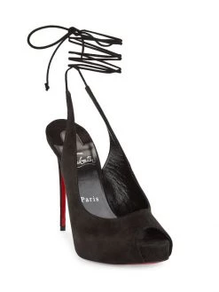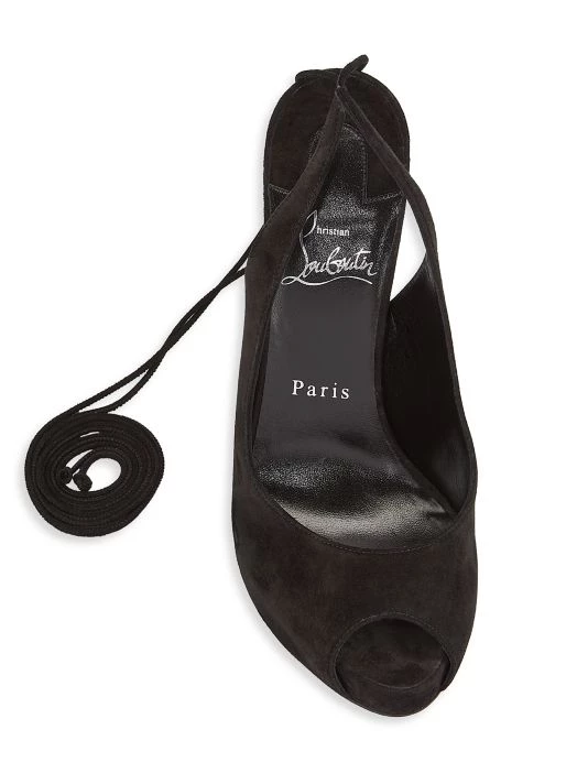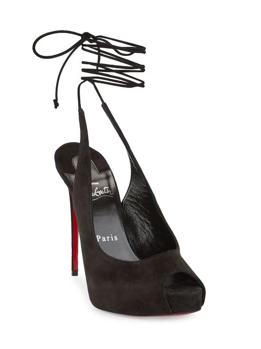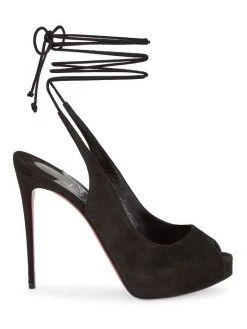 Fastened by dainty laces that effortlessly wrap around the ankle, Christian Louboutin’s Nvp sandals are designed with a low-cut vamp complemented by a peep toe. This Italian suede pair is anchored by a striking stiletto heel showcasing the maison’s iconic red sole.