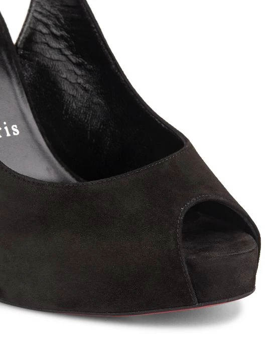 - Suede-covered stiletto heel, 4.75″ (120mm)