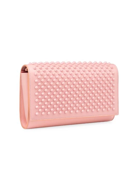 Made in Italy, Christian Louboutin’s Paloma clutch is crafted of rich leather with signature tonal spikes. This piece is accompanied by a lightweight chain strap for hands-free ease.
