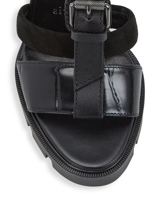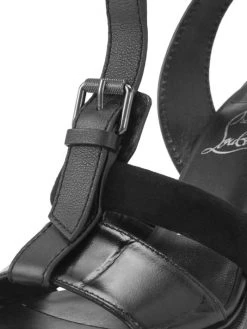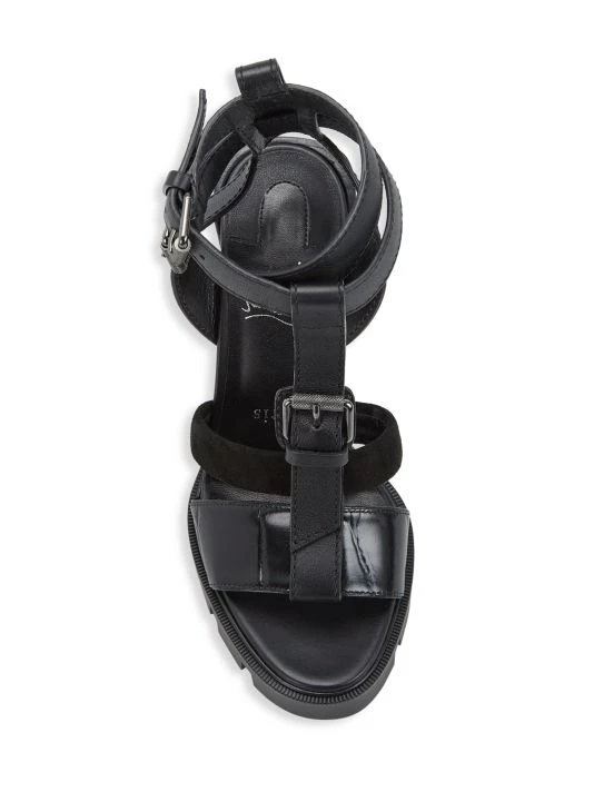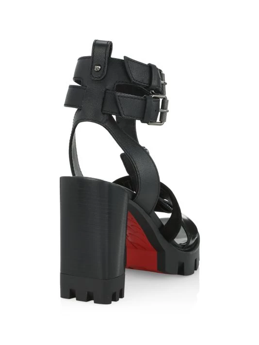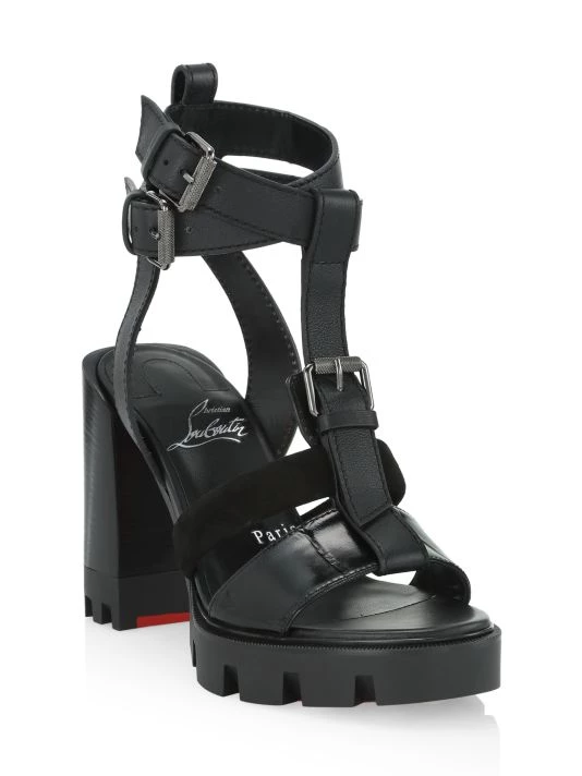Skillfully crafted in Italy of rich leather, Christian Louboutin’s Rangerissima sandals are fastened with bold buckle straps. This edgy pair is anchored by a lugged block heel with the maison’s signature red sole.