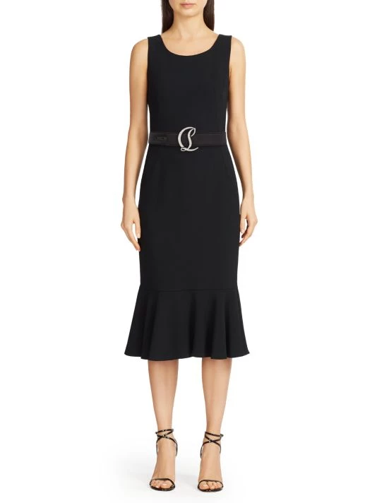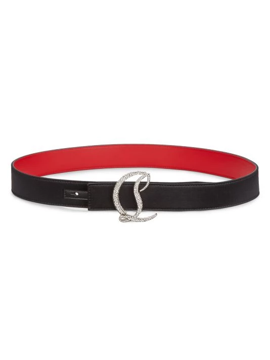 Satin belt highlighted with logo initial buckle adorned with shimmering crystals for a touch of glam.