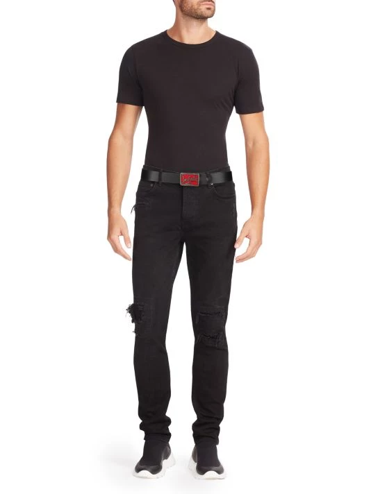 This statement belt with iconic logo buckle adds a fashionable look to any ensemble.