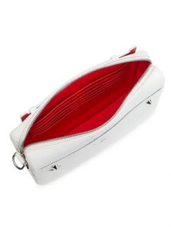 Accented with Christian Louboutin’s signature spikes, this pebbled leather crossbody bag features a logo plaque at the front and is designed with a detachable strap.