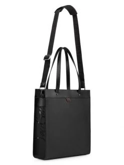 The Ruistote bag by Christian Louboutin is crafted of pebbled leather and features a signature logo shoulder strap. A small logo plaque adorns the face of the bag for luxurious detail.