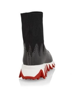 Made in Italy of ribbed-knit material, Christian Louboutin’s Sharky sneakers are set on the signature rigged sole that resembles shark teeth.