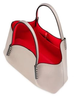 Detailed with spike-embellished handles, Christian Louboutin’s Cabarock tote is crafted of grained calf leather. This Italian-made piece is complete with the maison’s signature logo-debossed base, reminiscent of a sneaker sole.