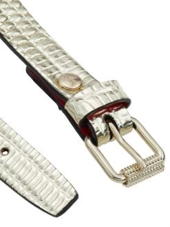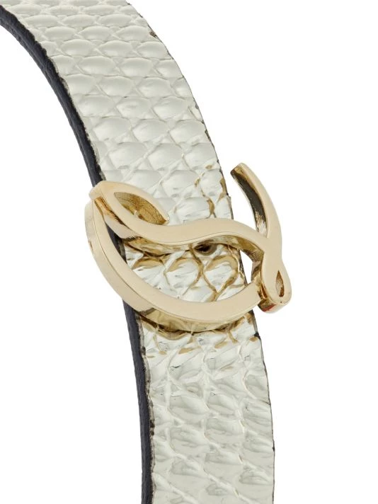 Christian Louboutin’s wrap bracelet is crafted of metallic snake-printed leather. With a signature red underside, this piece is finished with a goldtone “CL” accent.