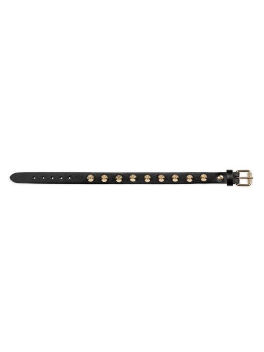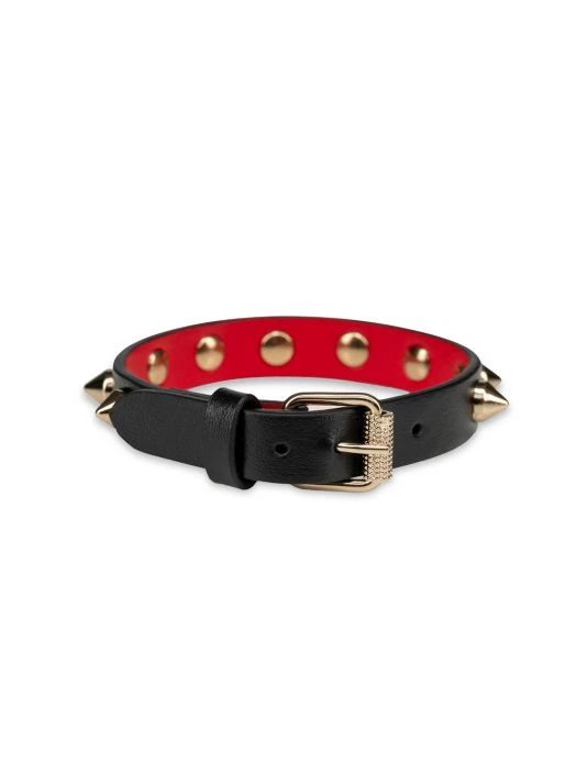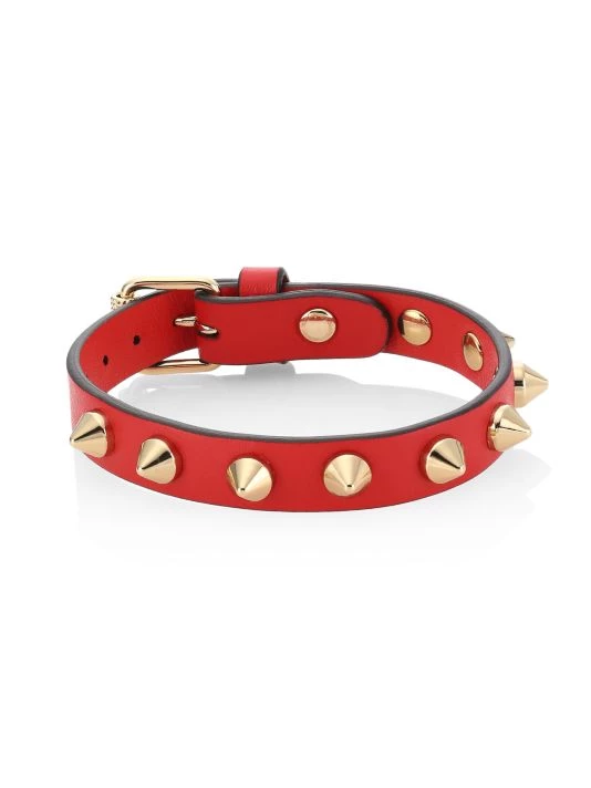 Luxe leather bracelet accented with Louboutin’s signature spiked trim.