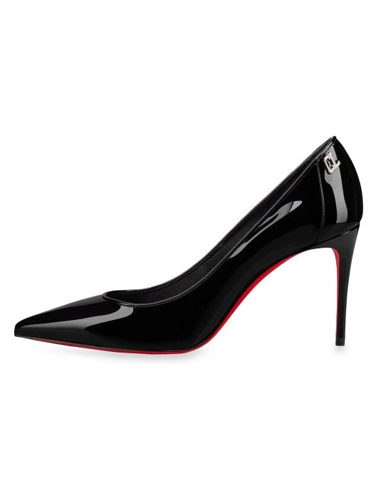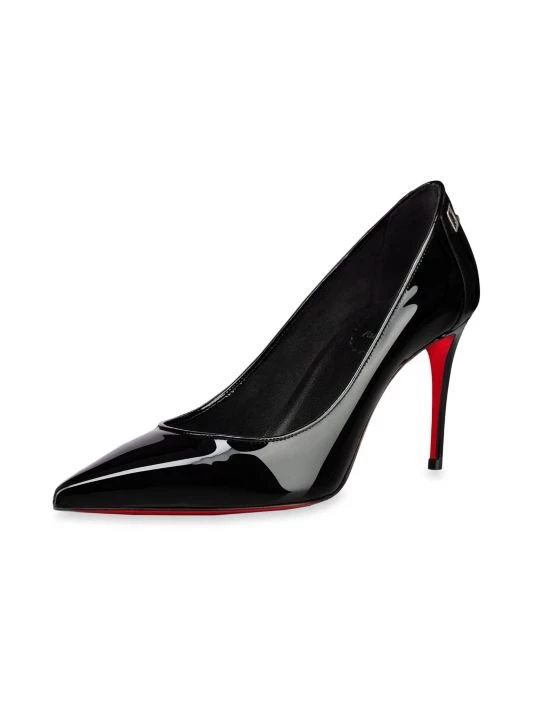 Finished in glossy patent leather, these sleek pumps showcase a chic pointed toe and signature lacquered red sole.